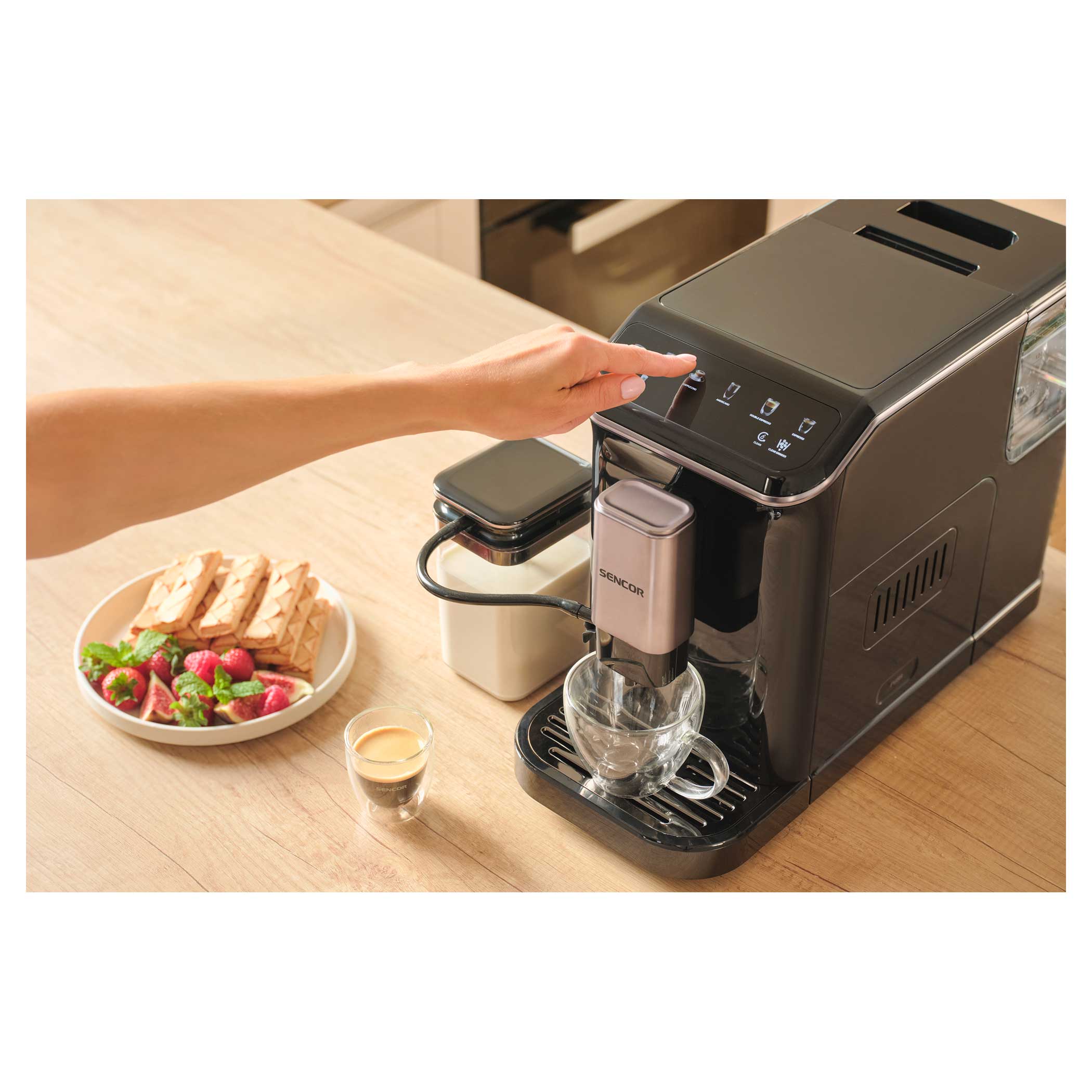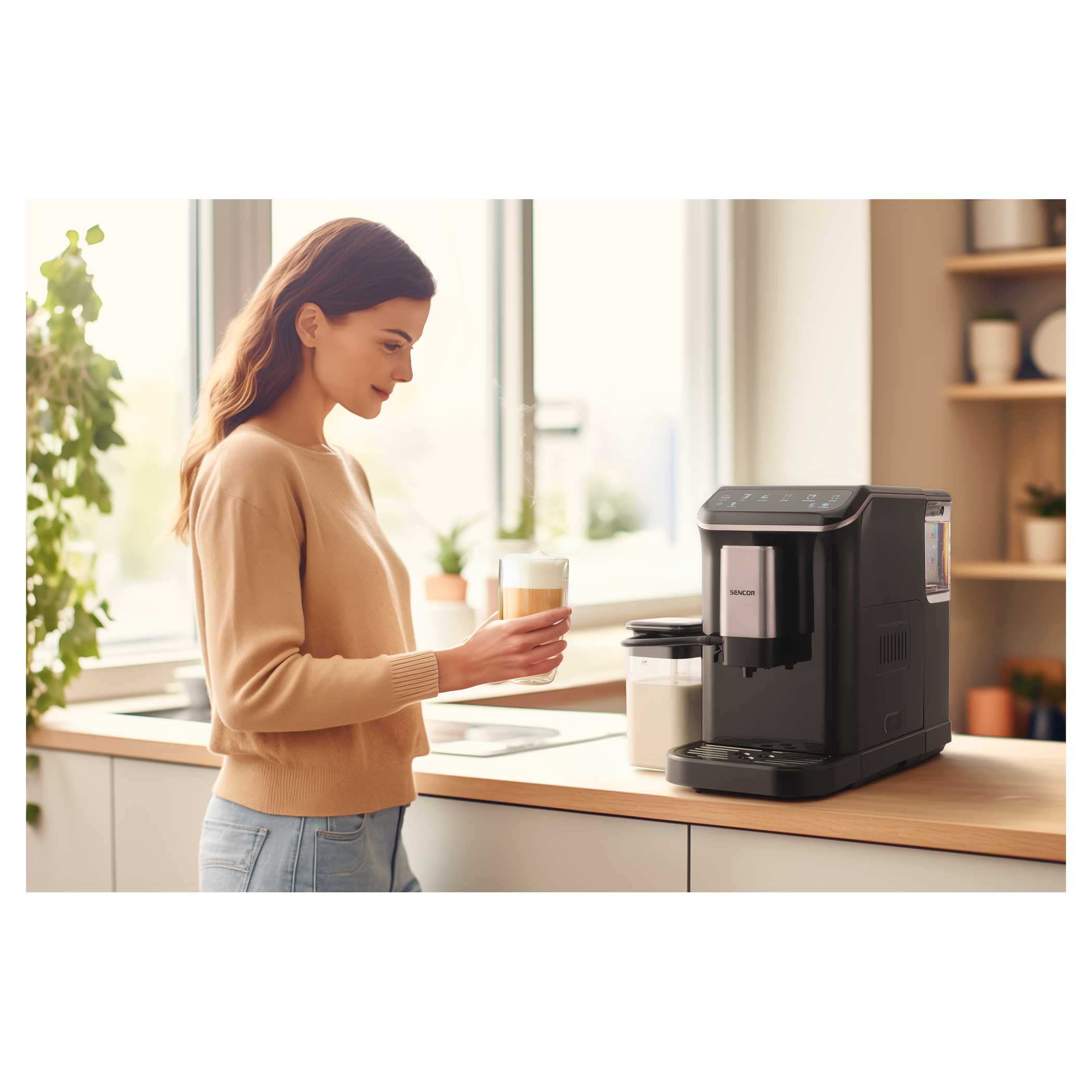 Αναβαθμίστε την εμπειρία του καφέ σας με την SES 8100BK—μια κομψή, λεπτή (18 cm) πλήρως αυτόματη μηχανή εσπρέσο και καπουτσίνο σχεδιασμένη για μοντέρνες κουζίνες. Με μια ζωντανή οθόνη αφής και ένα ενσωματωμένο σύστημα γάλακτος με δοχείο 750 ml, προσφέρει ποτά ποιότητας καφέ με το πάτημα ενός κουμπιού. Επιλέξτε από 7 αυτόματα προγράμματα και απολαύστε παρασκευή ακριβείας με μεταλλικό μύλο 15 ρυθμίσεων, αντλία 20 bar και σύστημα θέρμανσης με θερμομπλοκ. Με αφαιρούμενη δεξαμενή νερού 1,5 λίτρου, δοχείο κόκκων καφέ 200 γρ. και ρυθμιζόμενο ύψος διανομέα έως 155 mm, είναι κατασκευασμένο για ευκολία, ευελιξία και εξαιρετική γεύση—κάθε φορά.