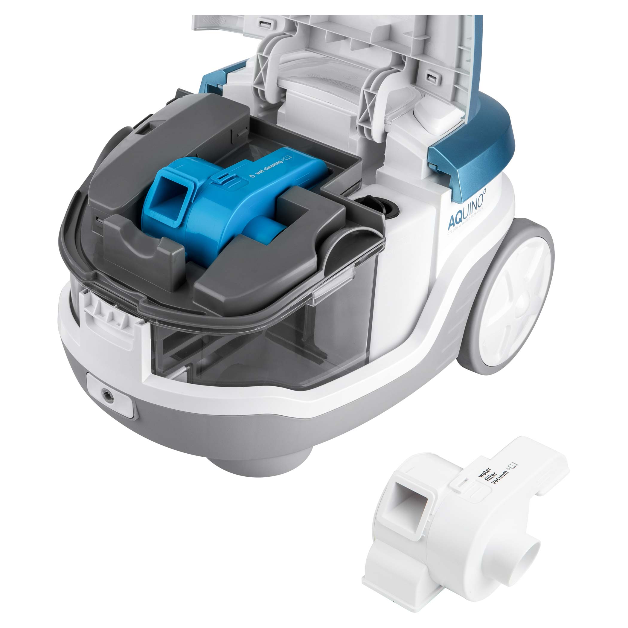 Παρεχόμενα αξεσουάρ στη συσκευασία: Ακροφύσιο παραθύρων & υγρών πατωμάτων, ακροφύσιο καθαρίσματος ταπετσαρίας, ακροφύσιο απορρόφησης νερού, βασικό πέλμα με τούρμπο περιστρεφόμενη βούρτσα, πέλμα σκληρών δαπέδων, μακρύ εύκαμπτο πέλμα, βουρτσάκι σκόνης, πέλμα με λεπτή σχισμή