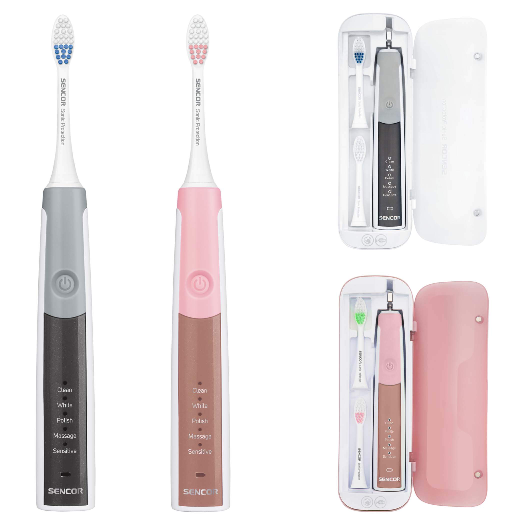 Περιλαμβάνονται στον εξοπλισμό: 2 οδοντόβουρτσα, 4 βασικές κεφαλές, 1 σταθμός φόρτισης με ενσωματωμένη βάση,