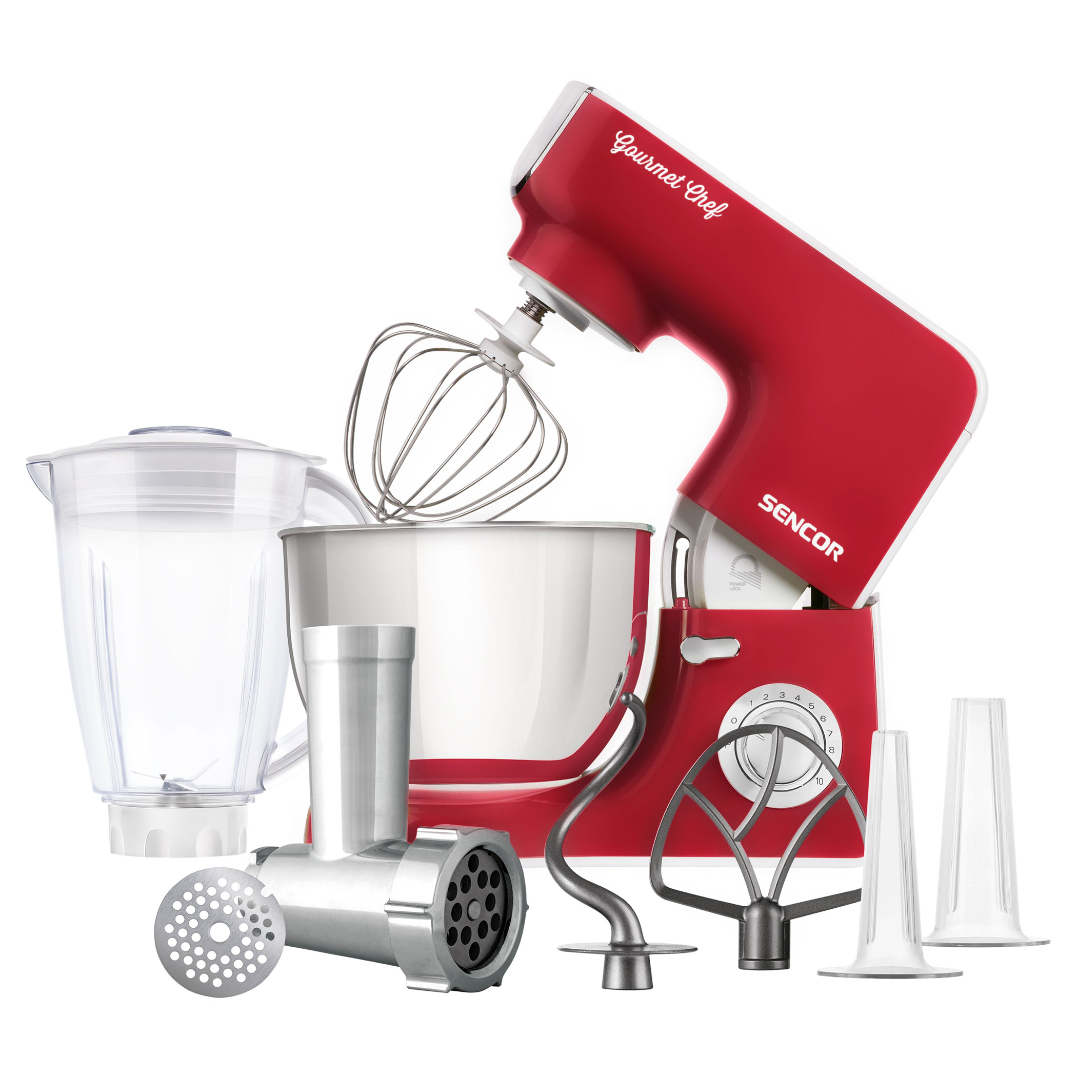 Αλεστής κρέατος, γάντζος για σκληρή ζύμη, χτυπητήρι, συρμάτινο στρογγυλό χτυπητήρι, γεμιστήρας λουκάνικου, μπολ ανάδευσης