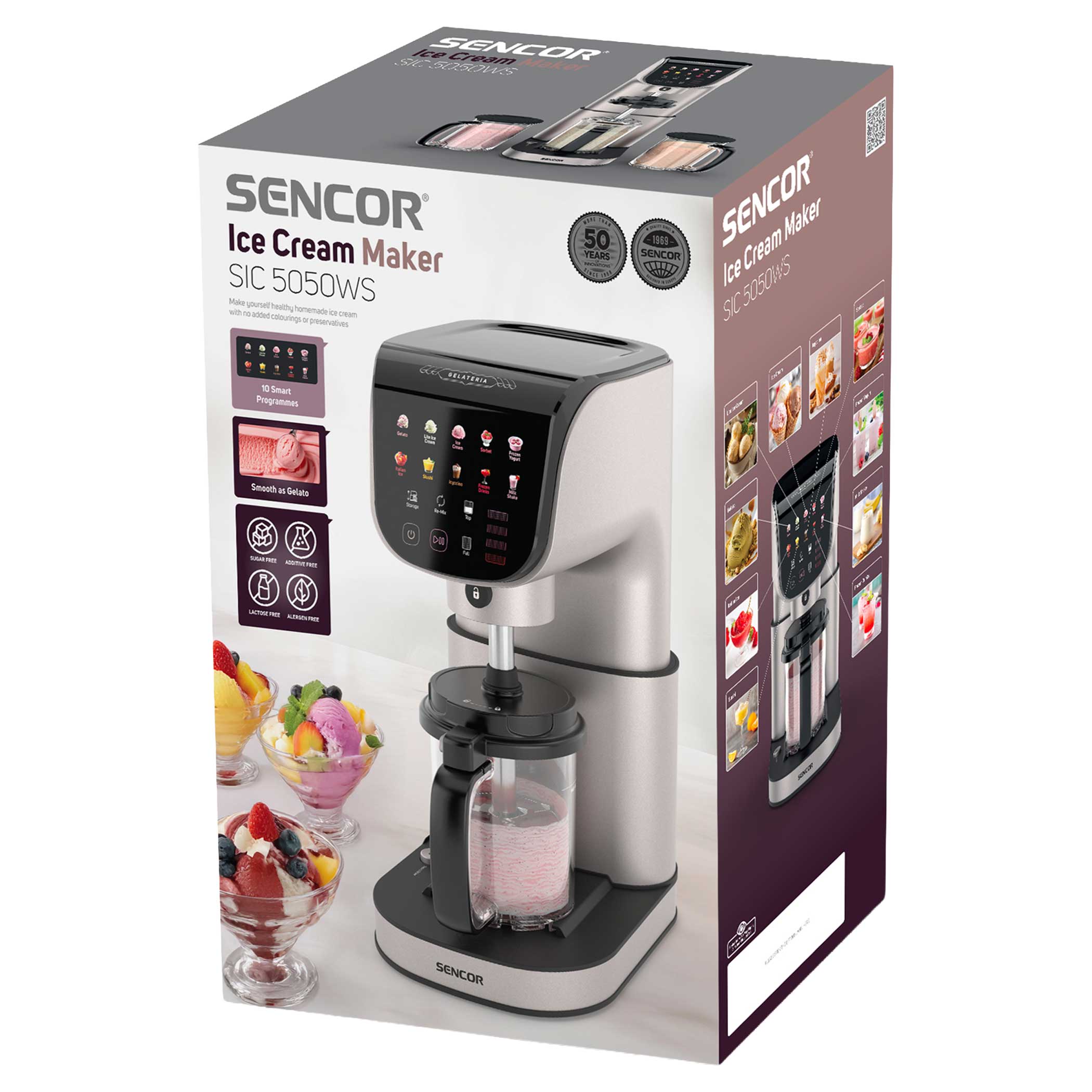 - Ο παρασκευαστής παγωτού έχει 10 έξυπνα προγράμματα - Τζελάτο, Μικρό παγωτό, Παγωτό, Σορμπέ, Παγωμένο γιαούρτι, Ιταλικό παγωτό