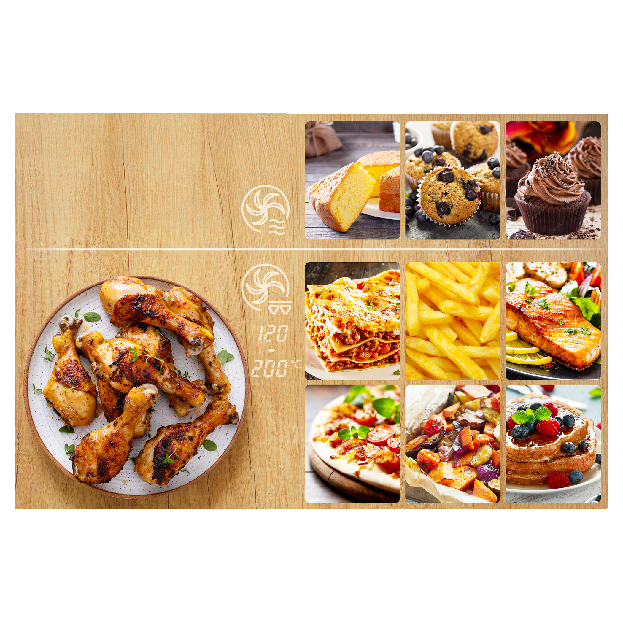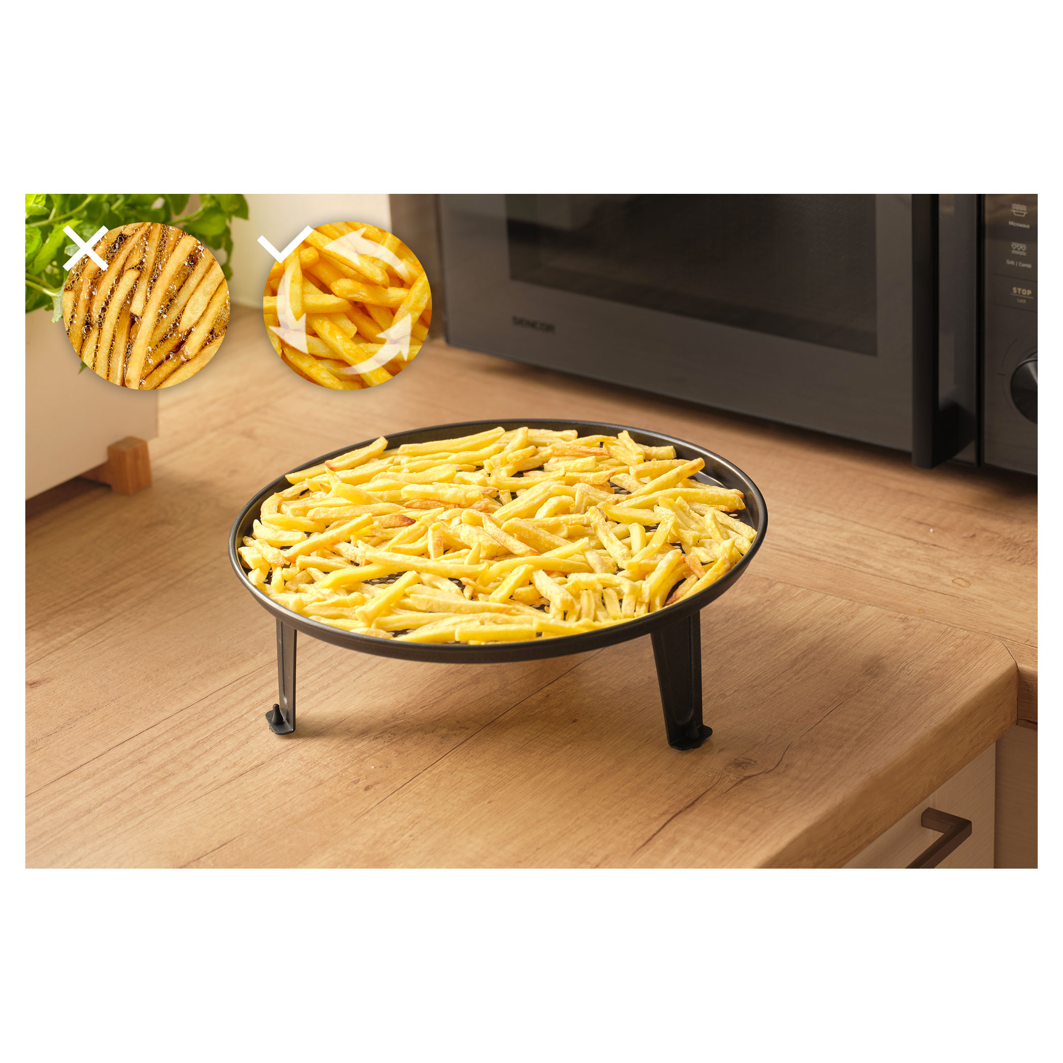 - Λειτουργία φριτέζας ζεστού αέρα που συνδυάζει πίσω θερμαντικό πηνίο, ανεμιστήρα και σχάρα από πάνω για ομοιόμορφο μαύρισμα και πιο τραγανά αποτελέσματα