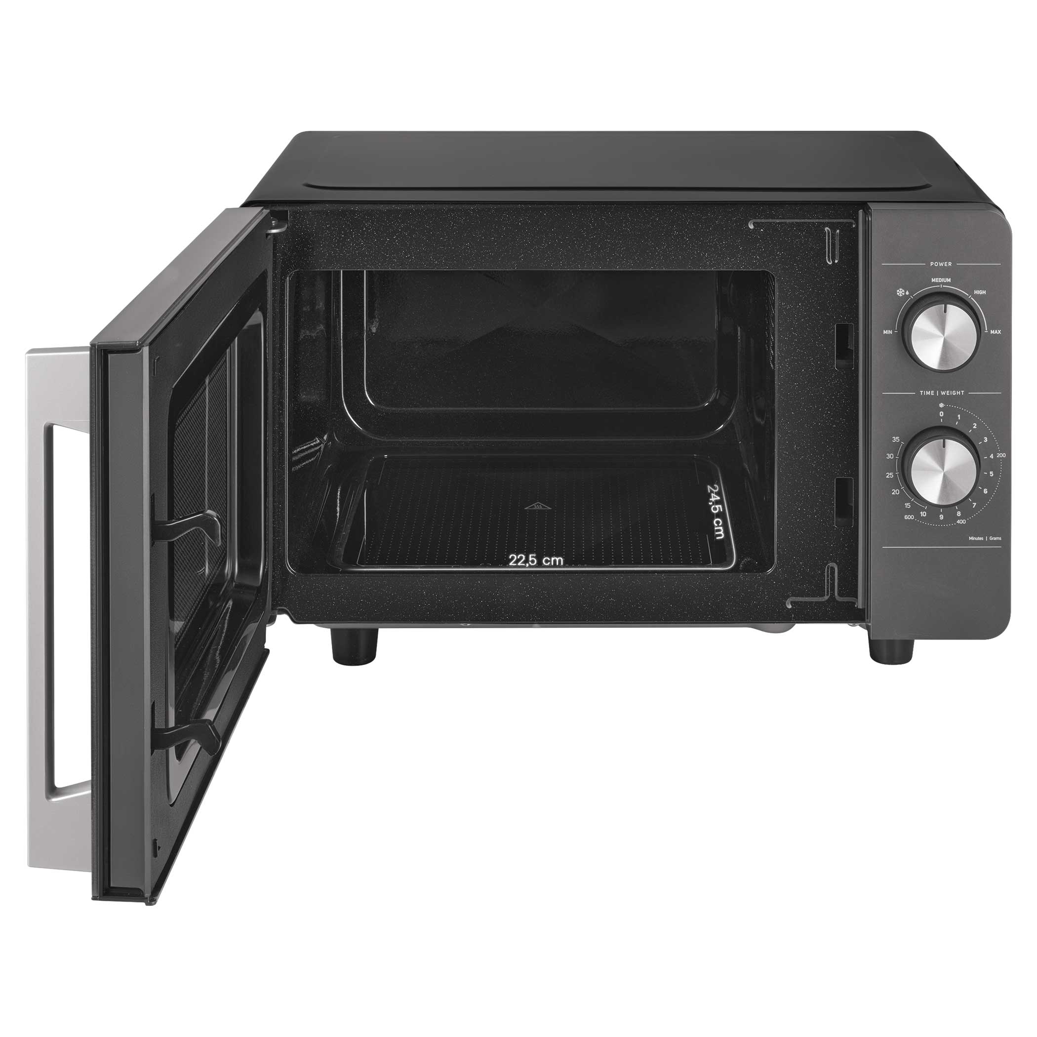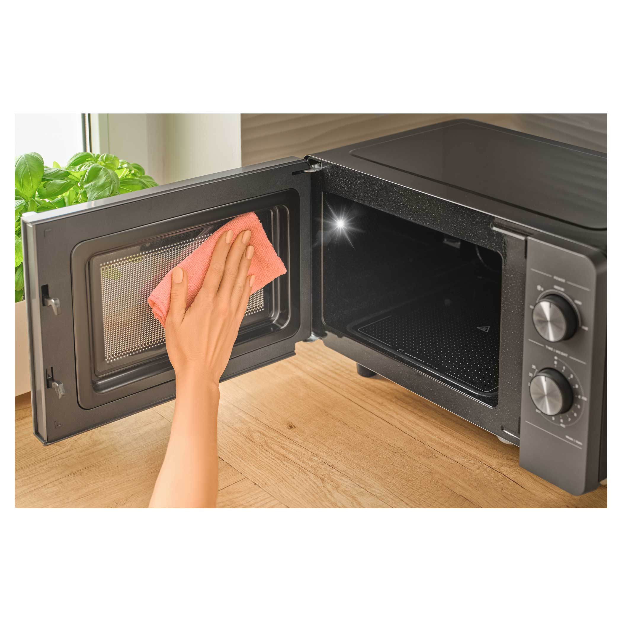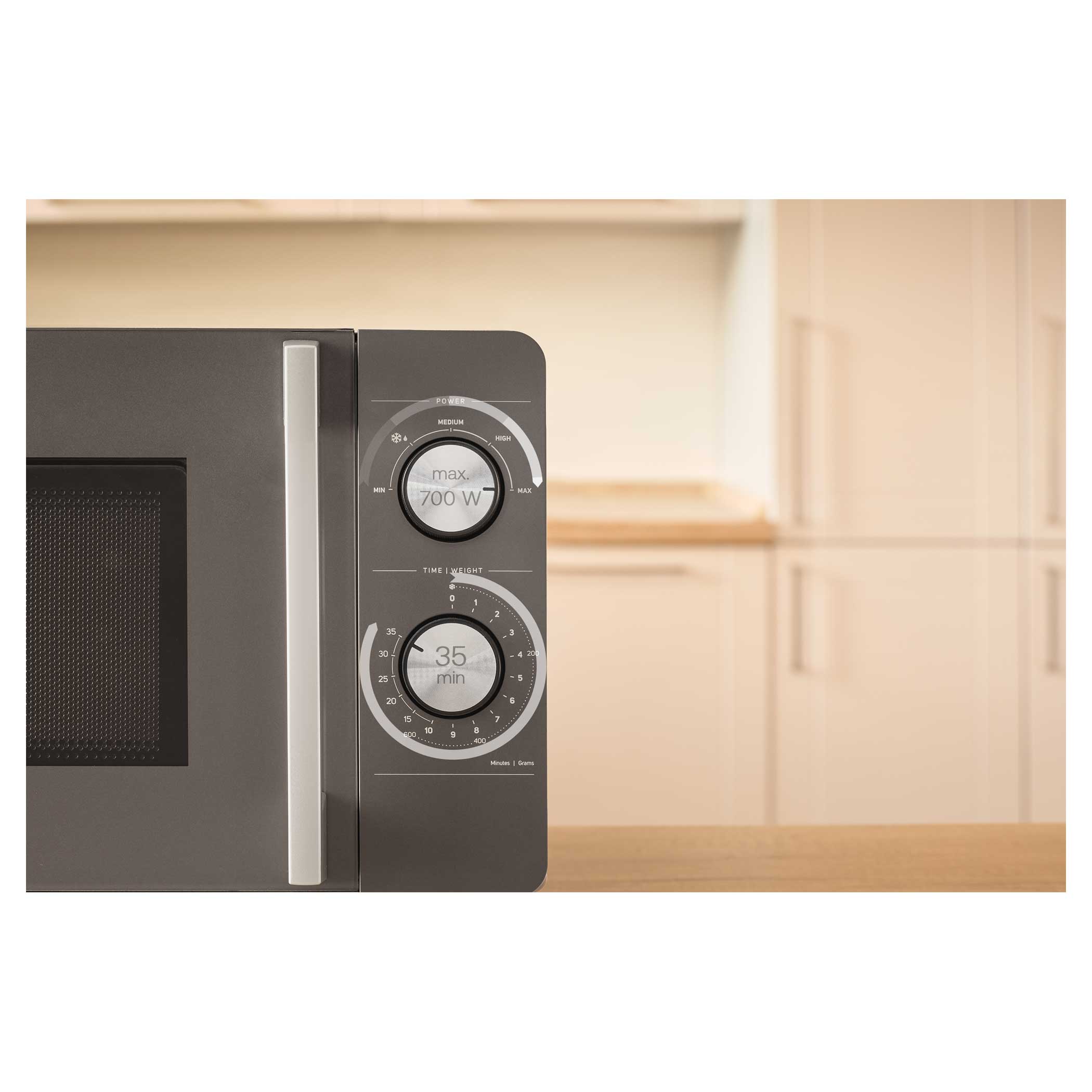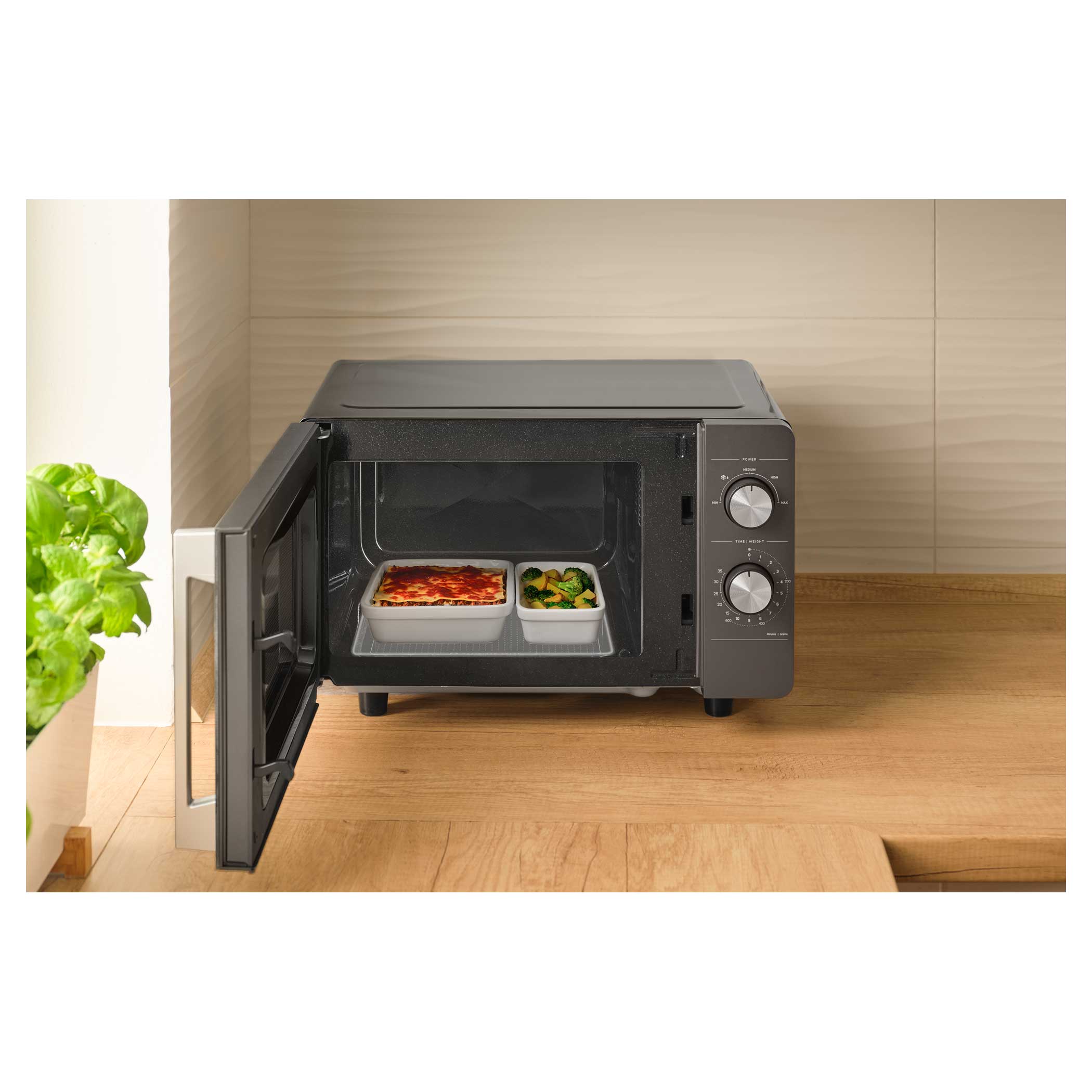 Τεχνολογία FLATBED χωρίς περιστρεφόμενη πλάκα για περισσότερο χώρο για δοχεία διαφορετικού σχήματος | Πλάκα από βοριοπυριτικό γυαλί 22,5 x 24,5 cm |Θέρμανση σε φούρνο μικροκυμάτων για εύκολη και γρήγορη αναθέρμανση ή μαγείρεμα | Χωρητικότητα 20 l | Κουμπιά ελέγχου για εύκολη ρύθμιση της ισχύος και του χρόνου θέρμανσης/μαγειρέματος | 5 επίπεδα ισχύος, συμπεριλαμβανομένης της γρήγορης και υγιεινής απόψυξης | Χρονοδιακόπτης 35 λεπτών | Ηχητικό σήμα τέλους λειτουργίας | Εσωτερικός χώρος με ιδιότητες παρόμοιες με την κεραμική για μεγαλύτερη αντοχή στις γρατζουνιές και ευκολότερο καθαρισμό | Πόρτα με ενσωματωμένη λαβή | Ισχύς μικροκυμάτων 700 W