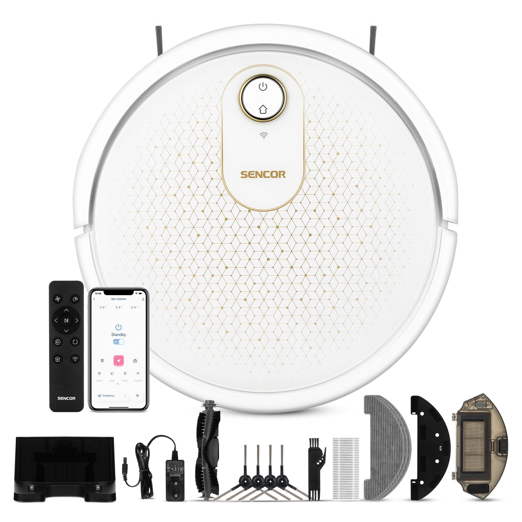 Με τη ρομποτική ηλεκτρική σκούπα και σφουγγαρίστρα, τη SENCOR SRV 4550WH, μπορείτε να καθαρίζετε το σπίτι σας όπως ποτέ πριν. Η ηλεκτρική σκούπα κινείται αυτόνομα στο σπίτι σκουπίζοντας και σφουγγαρίζοντας ταυτόχρονα, και χάρη στην μπαταρία ιόντων λιθίου με χωρητικότητα 2.600 mAh μπορεί να προσφέρει τις υπηρεσίες της έως και για 100 λεπτά με μία μόνο φόρτιση. Ο χειρισμός γίνεται με το τηλεχειριστήριο ή την εφαρμογή SENCOR Home για κινητές συσκευές. Μπορείτε να ελέγχετε τον καθαρισμό ακόμα και όταν δεν είστε στο σπίτι. Η μεγάλη ψηφιακή βούρτσα αναλαμβάνει τον κύριο όγκο του καθαρισμού. Δύο πλευρικές βούρτσες χρησιμοποιούνται για να καθαρίζουν στις γωνίες. Με ύψος 7,5 cm και διάμετρο 31 cm, η ρομποτική σκούπα SENCOR μπορεί να κινείται κάτω από έπιπλα, ανάμεσα από εμπόδια και μέσα σε μικρούς χώρους. Η γυροσκοπική πλοήγηση επιτρέπει την αποδοτική κάλυψη του χώρου.Βασικά χαρακτηριστικά: