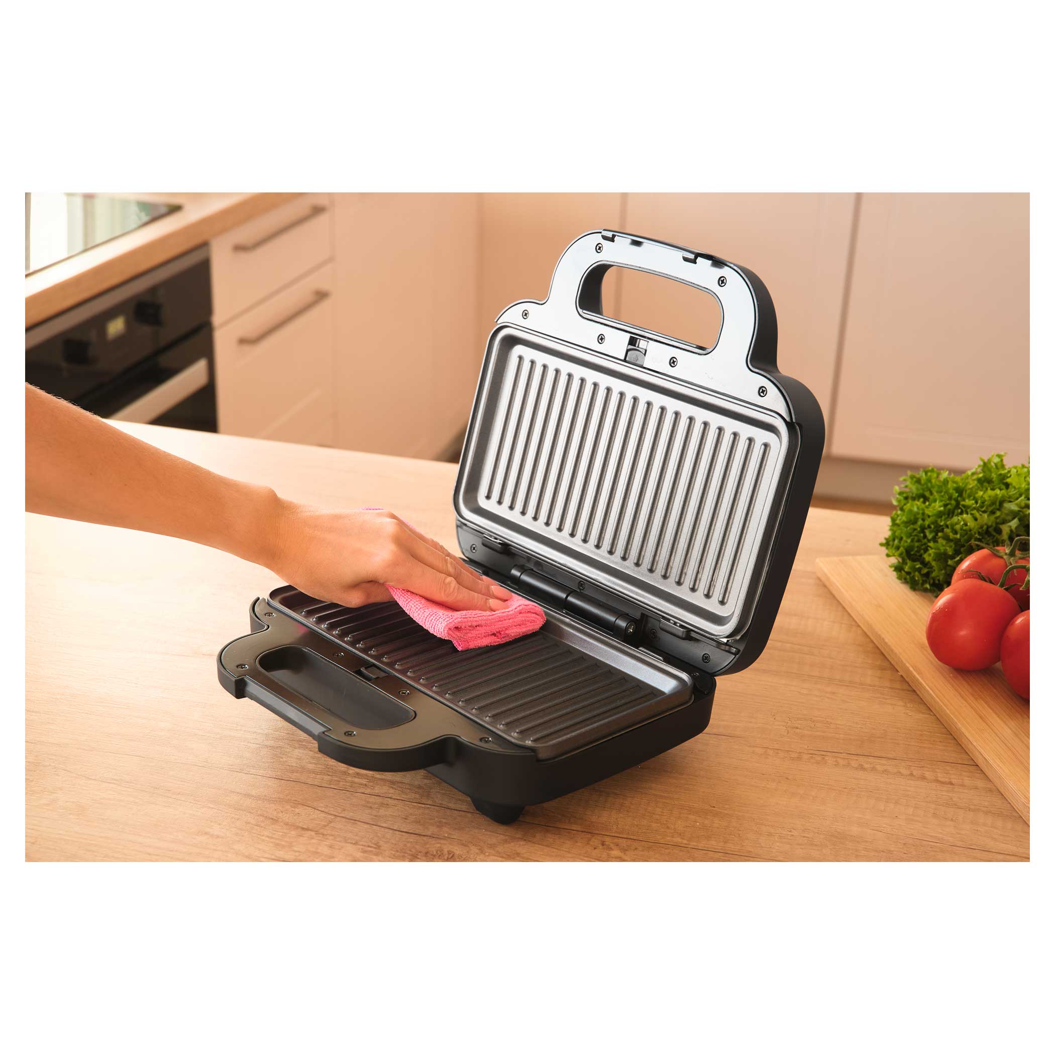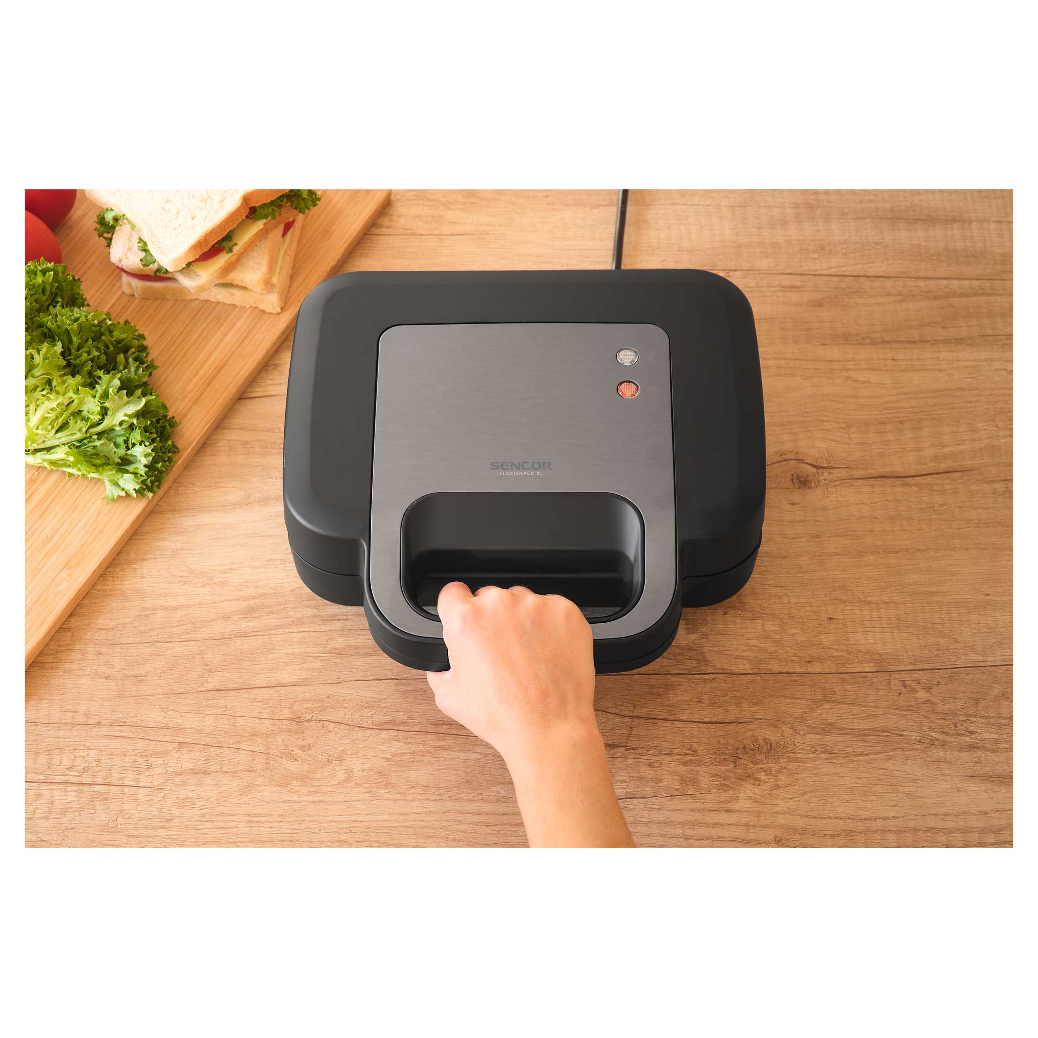 Απολαύστε τέλειες σπιτικές λιχουδιές κάθε μέρα. Η τοστιέρα Sencor SSM 9860BK FlexiSnack XL με 6 εναλλάξιμες πλάκες XL σας επιτρέπει να ετοιμάζετε τα πάντα, από τραγανό τοστ μέχρι νόστιμα panini και αφράτες βάφλες, τηγανίτες και κρέπες. Χάρη στην αντικολλητική επιφάνεια, καθαρίζεται εύκολα και σας εξοικονομεί χρόνο και κόπο στην κουζίνα.