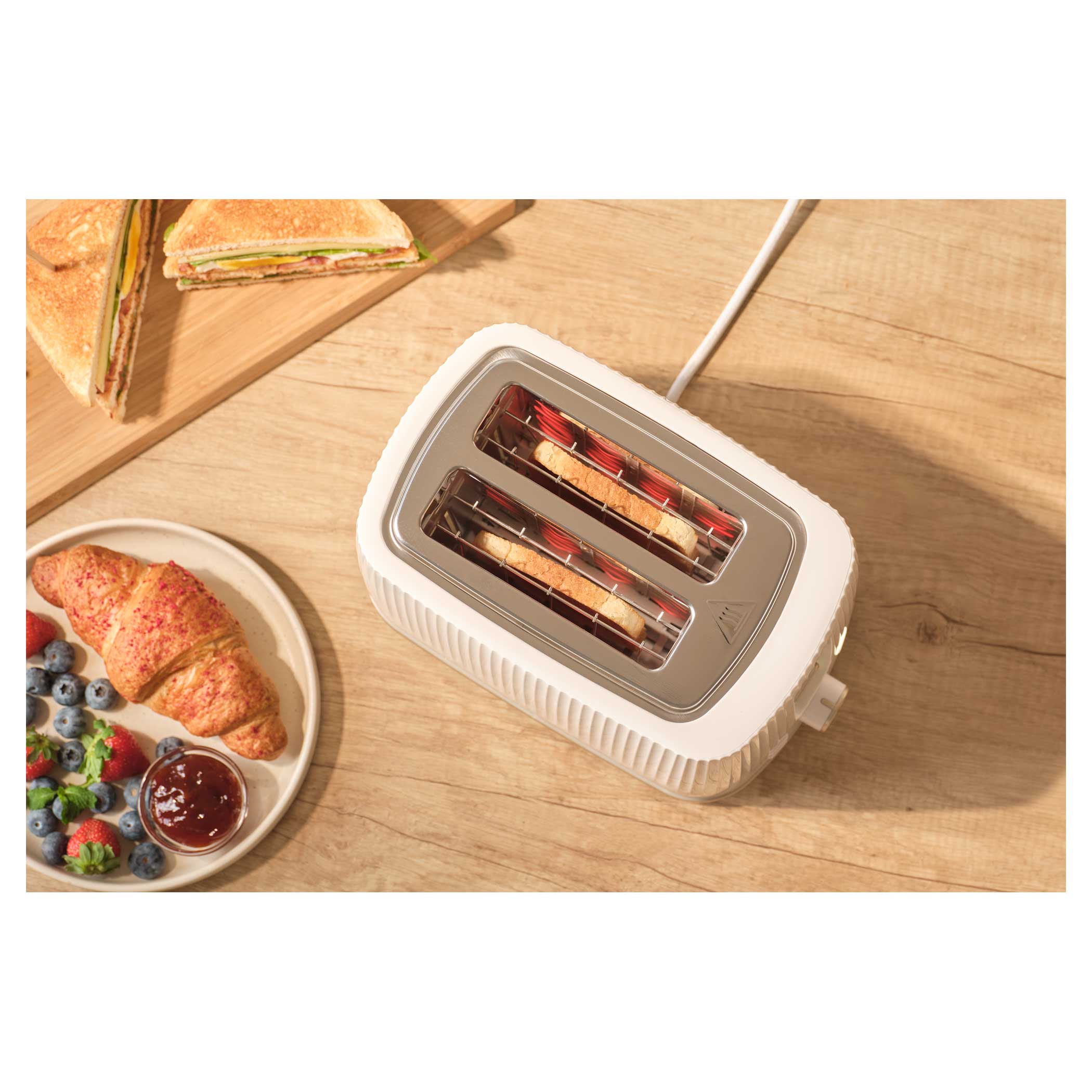 Με τη φρυγανιέρα με 2 υποδοχές φρυγανίσματος και 7 επίπεδα έντασης φρυγανίσματος, μπορείτε εύκολα να ετοιμάσετε φρυγανιές όπως σας αρέσουν. Χάρη σε διάφορες λειτουργίες, ζεσταίνει, φρυγανίζει και ξεπαγώνει αρτοσκευάσματα. Ετοιμάζει επίσης ψωμάκια ή μπαγκέτες με τη βοήθεια της σχάρας φρυγανίσματος. Για γρήγορη διακοπή της λειτουργίας, διαθέτει λειτουργία άμεσης διακοπής φρυγανίσματος.• 2 υποδοχές φρυγανίσματος