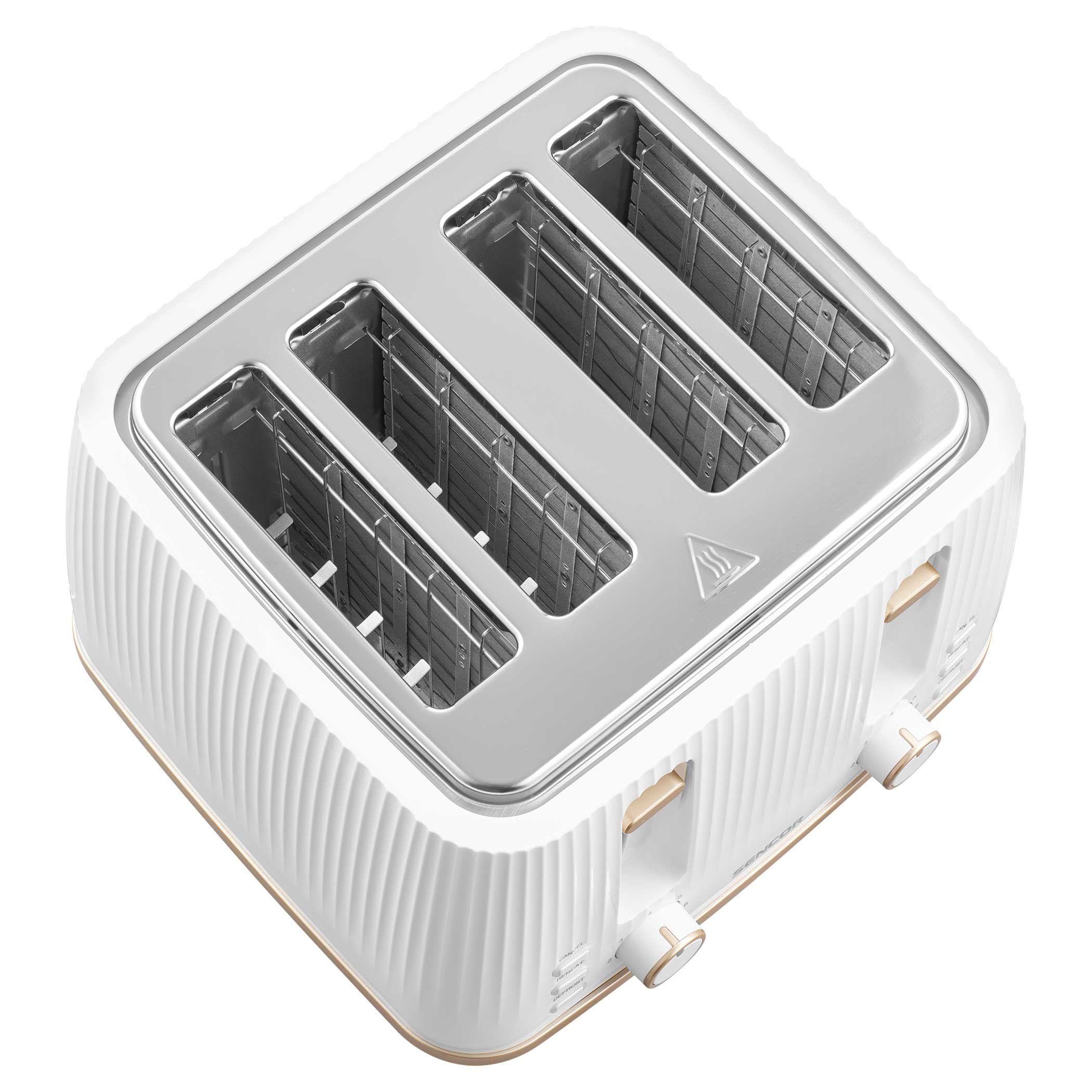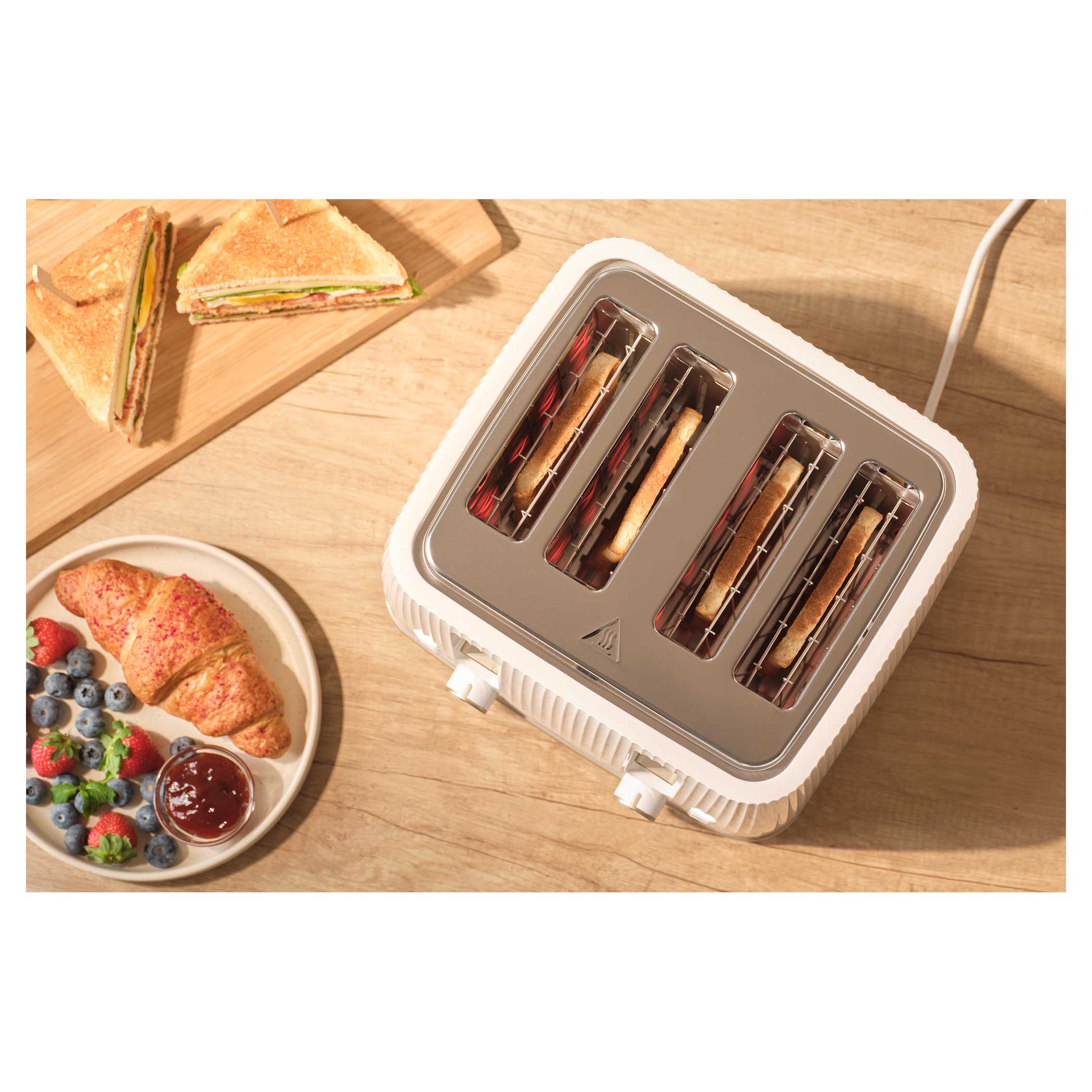 Με τη φρυγανιέρα, μπορείτε εύκολα να ετοιμάσετε τοστ ακριβώς σύμφωνα με τις προτιμήσεις σας με τη βοήθεια 7 επιπέδων έντασης ψησίματος και 4 υποδοχών ψησίματος. Μπορείτε να χρησιμοποιήσετε τη σχάρα ψησίματος για να ψήσετε διαφορετικά είδη ψωμιού. Χάρη στις 3 λειτουργίες, θερμαίνει, φρυγανίζει και ξεπαγώνει το ψωμί. Εάν είναι απαραίτητο, έχετε λειτουργία άμεσης διακοπής.• 4 υποδοχές ψησίματος