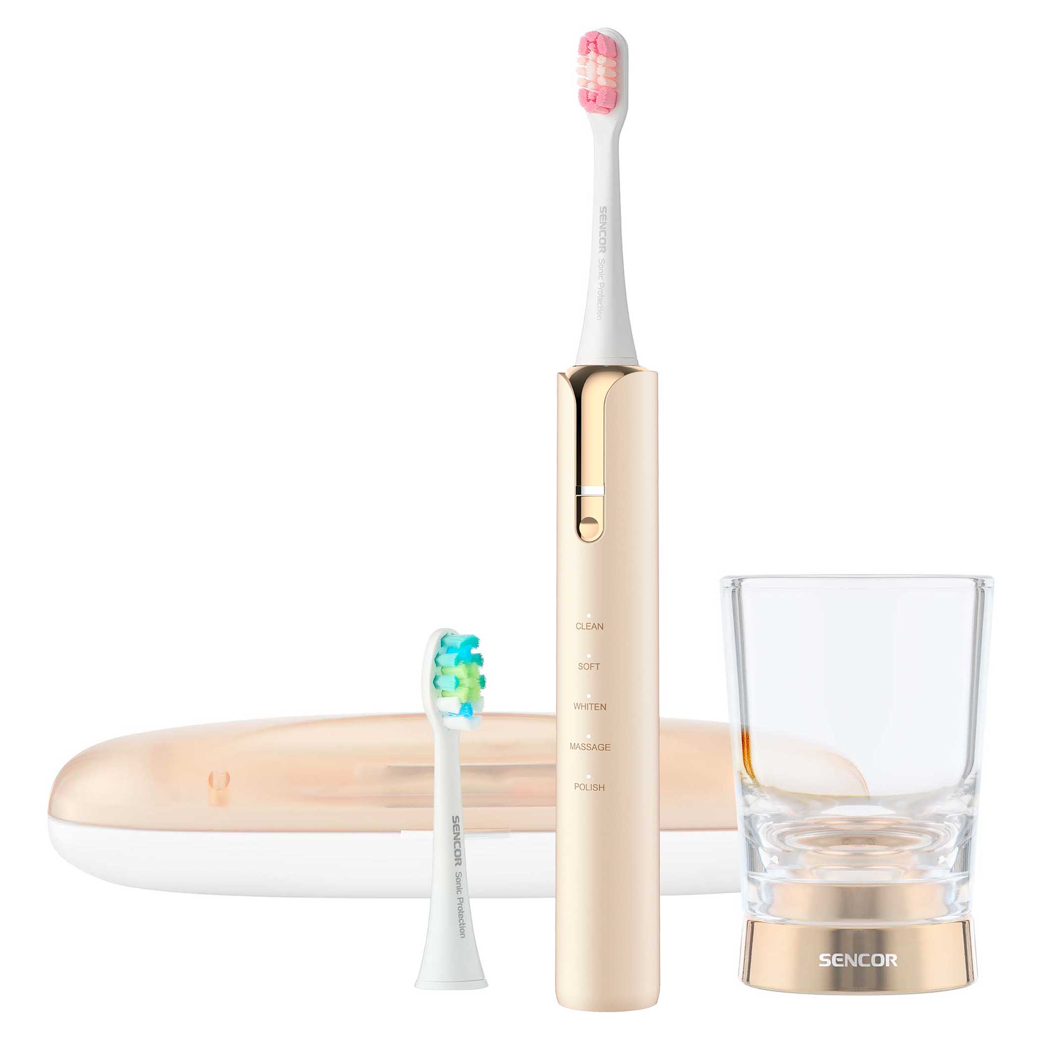 Περιλαμβάνονται στον εξοπλισμό: 1 οδοντόβουρτσα, 2 κεφαλές, 1 επαγωγικός φορτιστής, 1 γυάλινη κούπα, 1 θήκη μεταφοράς με σύνδεσμο USB και αποστειρωτή UV