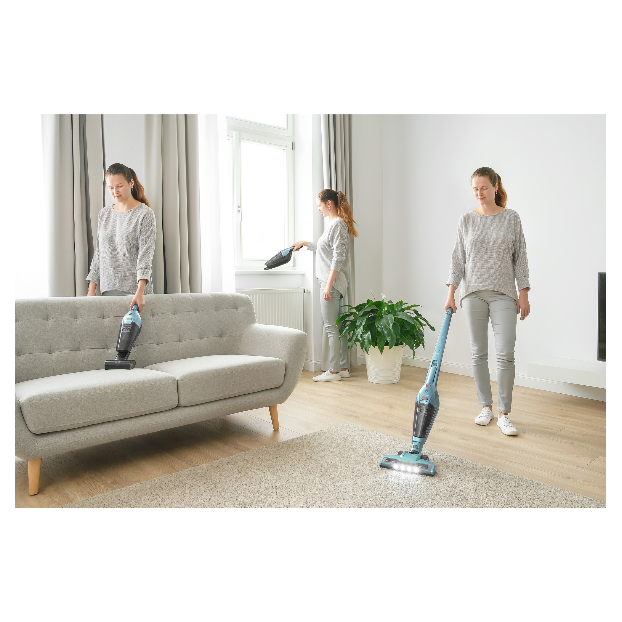 Η ελαφριά και εύχρηστη ηλεκτρική σκούπα προσφέρει μια γρήγορη και απλή λύση για τον καθημερινό καθαρισμό κάθε τύπου επιφανειών. Πλήρης ελευθερία κινήσεων χωρίς καλώδιο ρεύματος. Εξαιρετικός χειρισμός και μεγάλη ευελιξία γύρω από τα έπιπλα χάρη στο περιστρεφόμενο ακροφύσιο 180° και το χαμηλό βάρος της ηλεκτρικής σκούπας. Λειτουργία αυτόνομης στήριξης για προσωρινή διακοπή λειτουργίας και βολική αποθήκευση της ηλεκτρικής σκούπας.ΥΨΗΛΗ ΑΠΟΔΟΣΗ ΣΕ ΔΑΠΕΔΑ ΚΑΙ ΧΑΛΙΑ