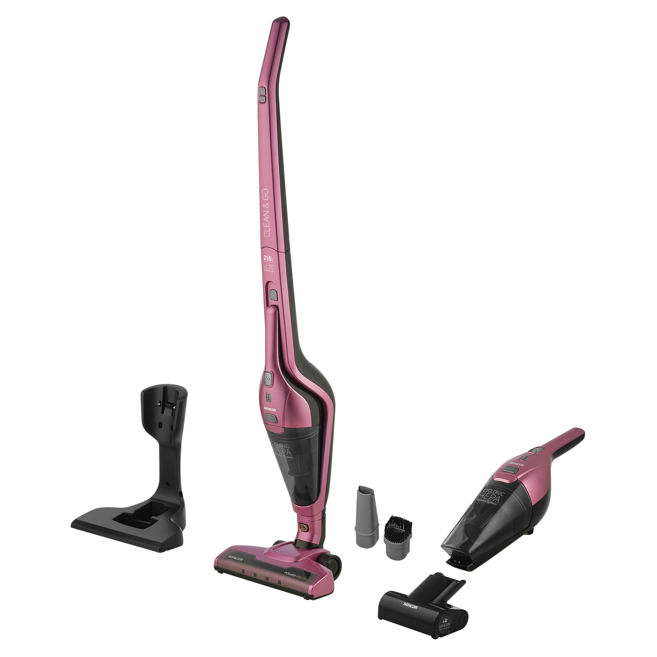 Με το πάτημα ενός κουμπιού, η μονάδα χειρός μπορεί να αφαιρεθεί εύκολα και, μαζί με τα εναλλάξιμα εξαρτήματα, είναι το τέλειο εργαλείο για τον καθαρισμό της σκόνης από τα έπιπλα ή το εσωτερικό του αυτοκινήτου.